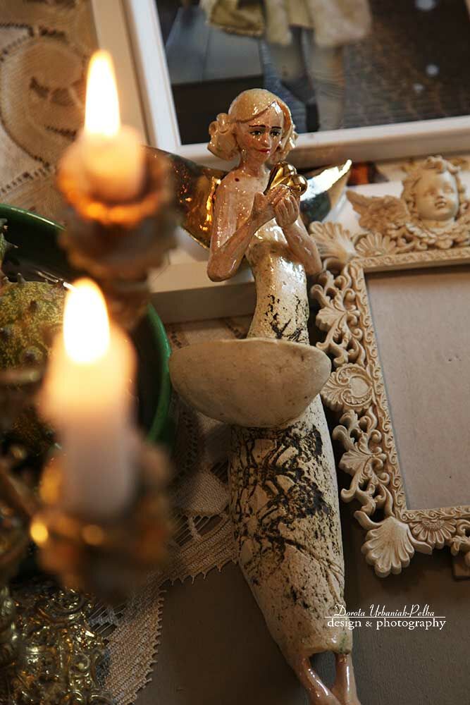 ANIOŁ ŚWIECZNIK TURMALINOWY ZE ZŁOTYM SERDUSZKIEM