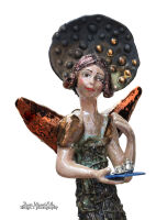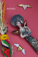 Kolory: beżowe ciało, złote skrzydła, złoty kot, subtelne akcenty