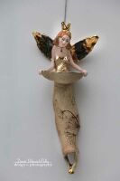 Skrzydła, korona, przód szaty oraz buciki szkliwione złotem.