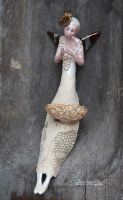 Skrzydła .nakrycie głowy szkliwione miedzią oraz złotem.