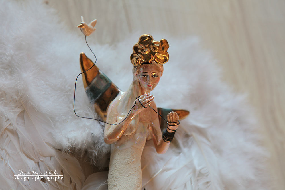 ANIOŁ TURMALINOWY Z MAŁYM PTAKIEM NA LINCE