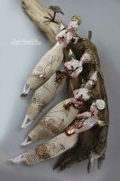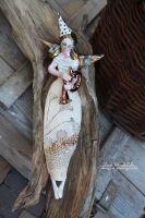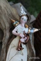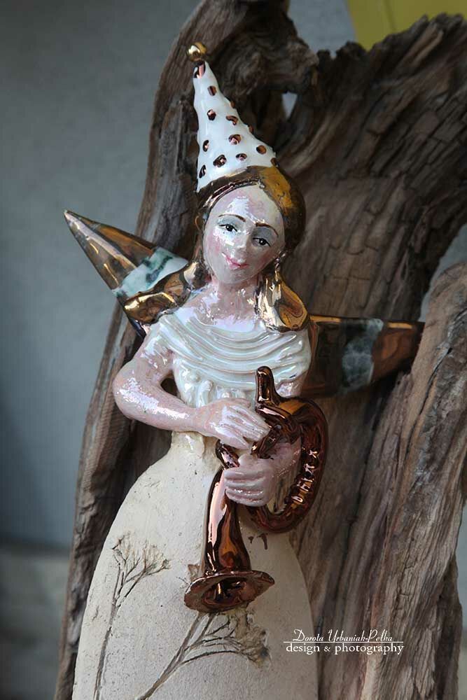 Skrzydła, włosy szkliwione złotem .