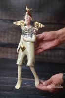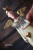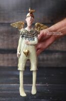 Anioł ze złotymi skrzydłami, ptaszkiem i złotym sercem - z kolekcji "Równoległy świat".