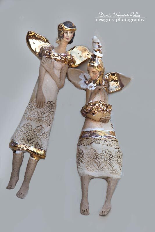 WIANEK, SKRZYDŁA, PASEK NA SZACIE ORAZ KWIATY SZKLIWIONE ZŁOTEM