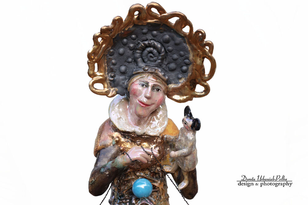 Rzeźba, sygnowana przez Dorotę Urbaniak-Pełkę, powstała w 2025 roku przy użyciu intuicyjnej techniki, która sprawia, że każda rysa i złoty detal wydają się mieć swoją historię. Szamot wypalany w szalonej temperaturze 1250 stopni Celsjusza jest odporny na warunki atmosferyczne.
