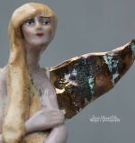 Skrzydła , nakrycie głwy oraz baletki na stopach szkliwione złotem.