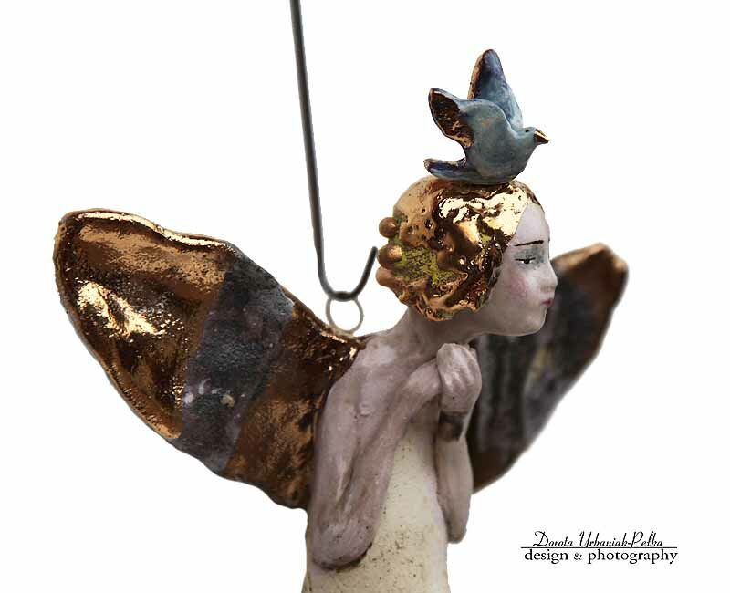 Skrzydła, włosy, ptasie piórka oraz buciki szkliwione złotem