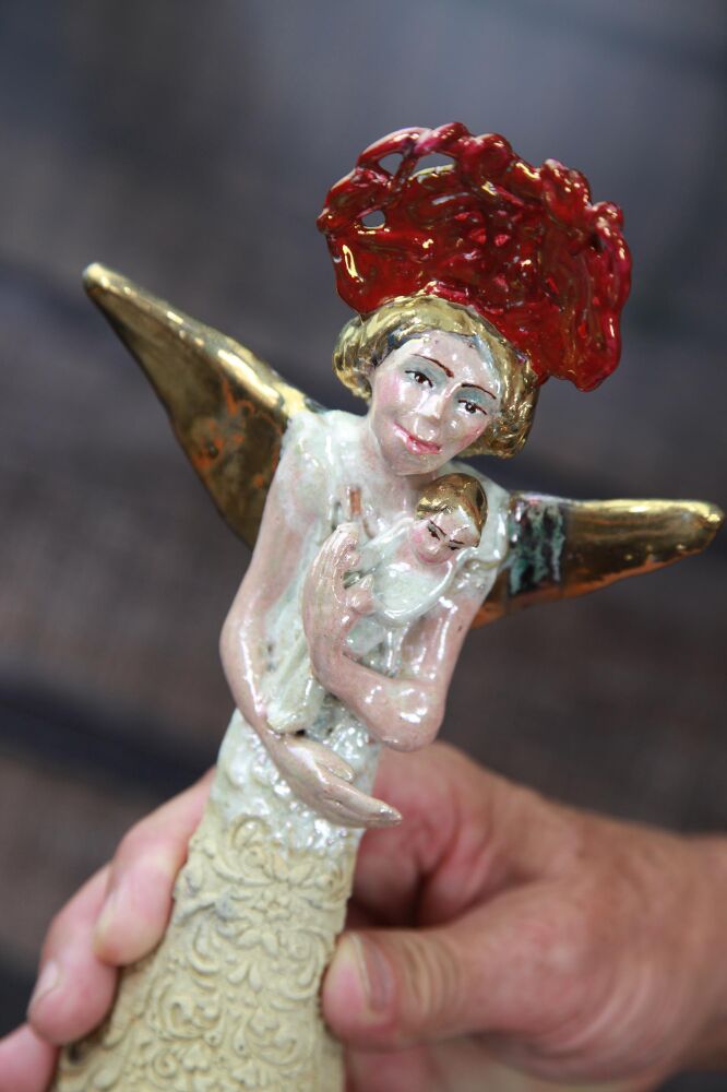 Skrzydła oraz liczne detale szkliwione miedzią oraz złotem.