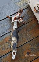 Skrzydła oraz liczne detale szkliwione miedzią oraz złotem.