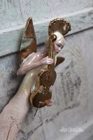 Skrzydła, wiolonczela, nakrycie głowy szkliwione złotem.
