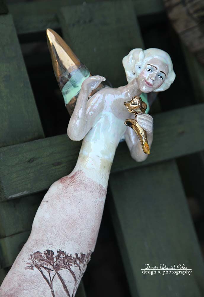 ANIOŁ TURMALINOWY ZE ZŁOTYM KWIATEM
