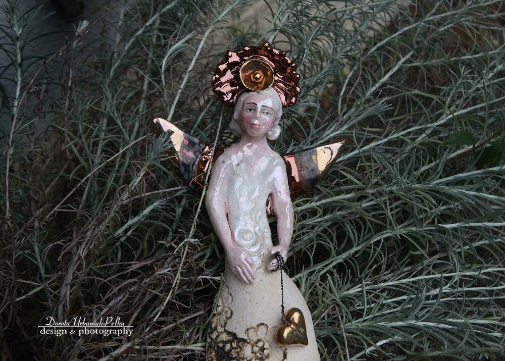 Skrzydła , NAKRYCIE GŁOWY oraz serce szkliwione miedzią oraz złotem.