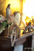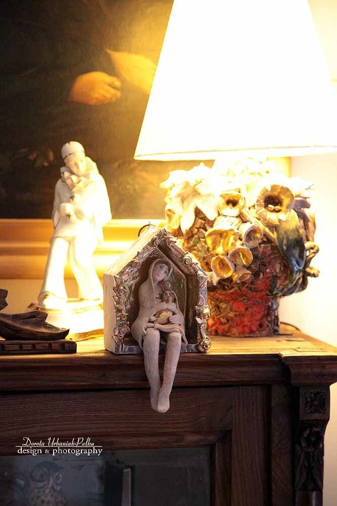ELEMENTY LIŚCI, SZATY ORAZ TYŁ KAPLICZKI  SZKLIWIONE ZŁOTEM.