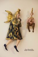 ELEMENTY SUKNI, KSIĘŻYC ORAZ KORONA SZKLIWIONE ZŁOTEM.