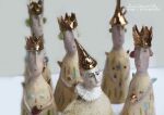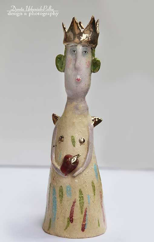 Czapka, skrzydła, kuleczki szkliwiona złotem.