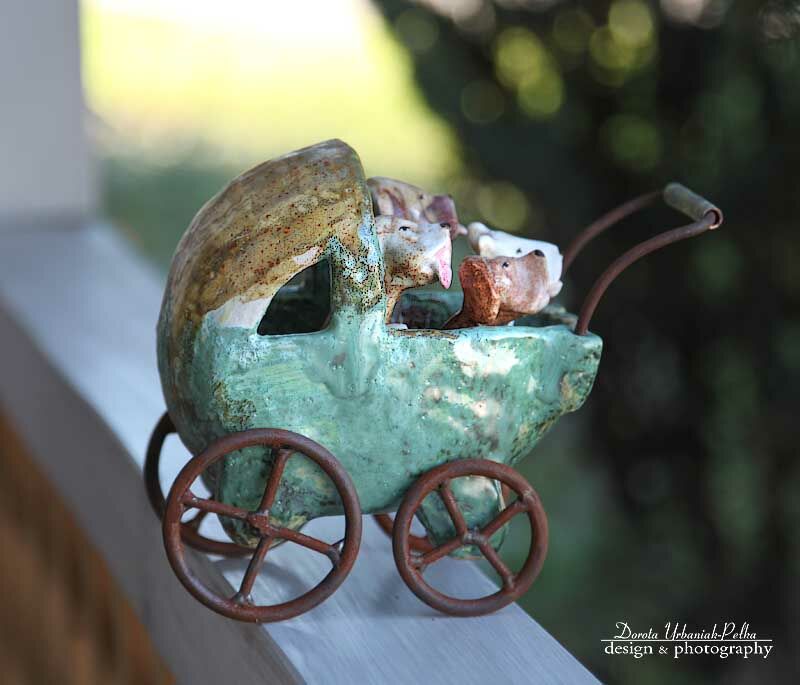 Wózek do postawienia. Wykonany z gliny szamotowej.