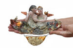 Ta ręcznie wykonana ceramiczna rzeźba ścienna z kolekcji „Parallel World” autorstwa Cela37 to poetycka celebracja miłości, spokoju i kunsztu artystycznego. Wykonana z wypalanej gliny szamotowej i pokryta złotymi i miedzianymi akcentami, przedstawia dwie cherubiny otoczone ptakami i różami – to wzruszająca chwila zamrożona w czasie.