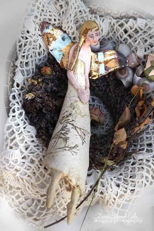 Skrzydła , włosy szkliwione złotem.