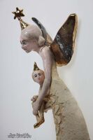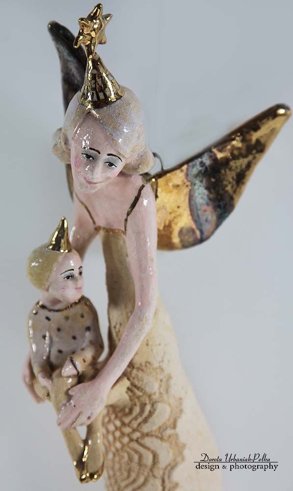 Skrzydła, detaliki i buciki szkliwione złotem.