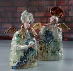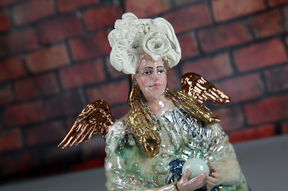 Anioł wykonany z gliny szamotowej wysoko palonej.