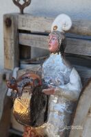 Rzeźba wykonana z szamotu szkliwionego.