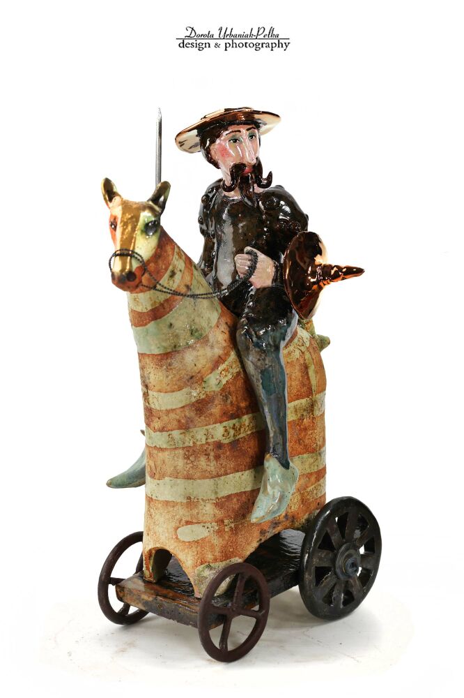 Don Kichot – błędny rycerz - Na drogach świata - ceramiczna rzeźba konia - stojąca rzeźba ceramiczna z kolekcji "Świat Równoległy".