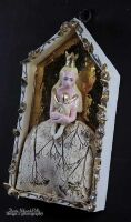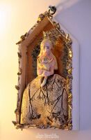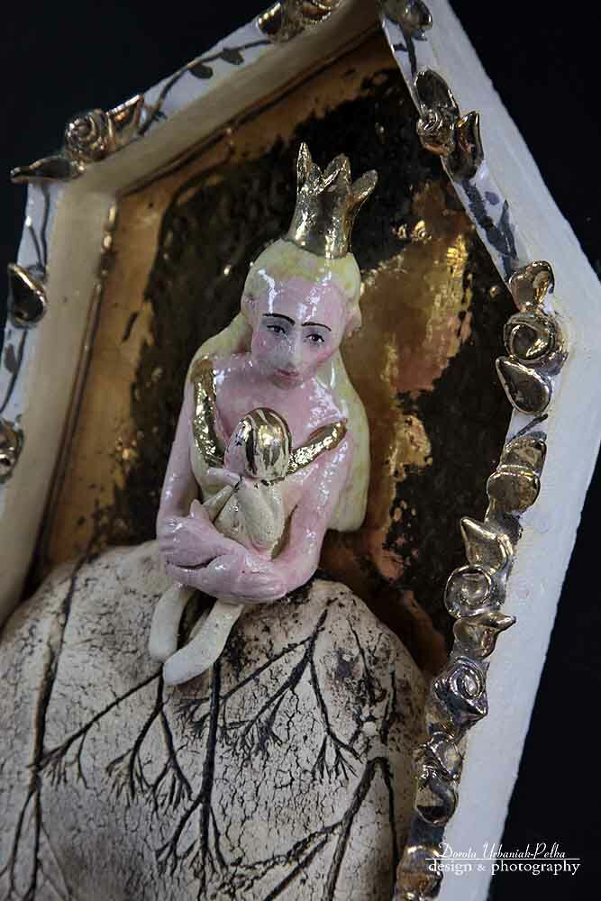 ELEMENTY LIŚCI,, KORONA ORAZ TYŁ KAPLICZKI  SZKLIWIONE ZŁOTEM,.