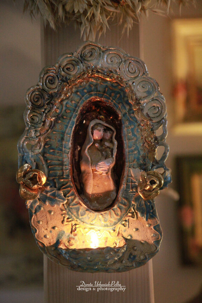 Kapliczka - KROPIELNICZKA - ŚWIECZNIK wykonana w szamotu.