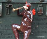 TRĄBKA SZKLIWIONA ZŁOTEM.