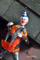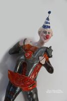 RZEŹBA PIERROTA WYKONANA Z GLINY SZAMOTOWEJ.