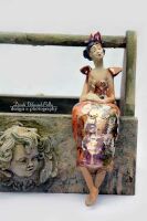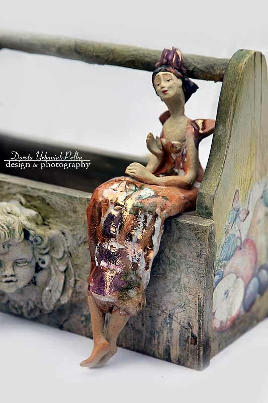 MONOCHROMATYCZNY ANIOŁ ZE ZŁOTYMI PTASZKAMI
