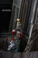 Uwaga, uwaga - Chodź tu - Narrator z huśtawką i papugą - rzeźba ścienna z kolekcji "Świat równoległy"..