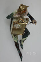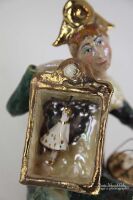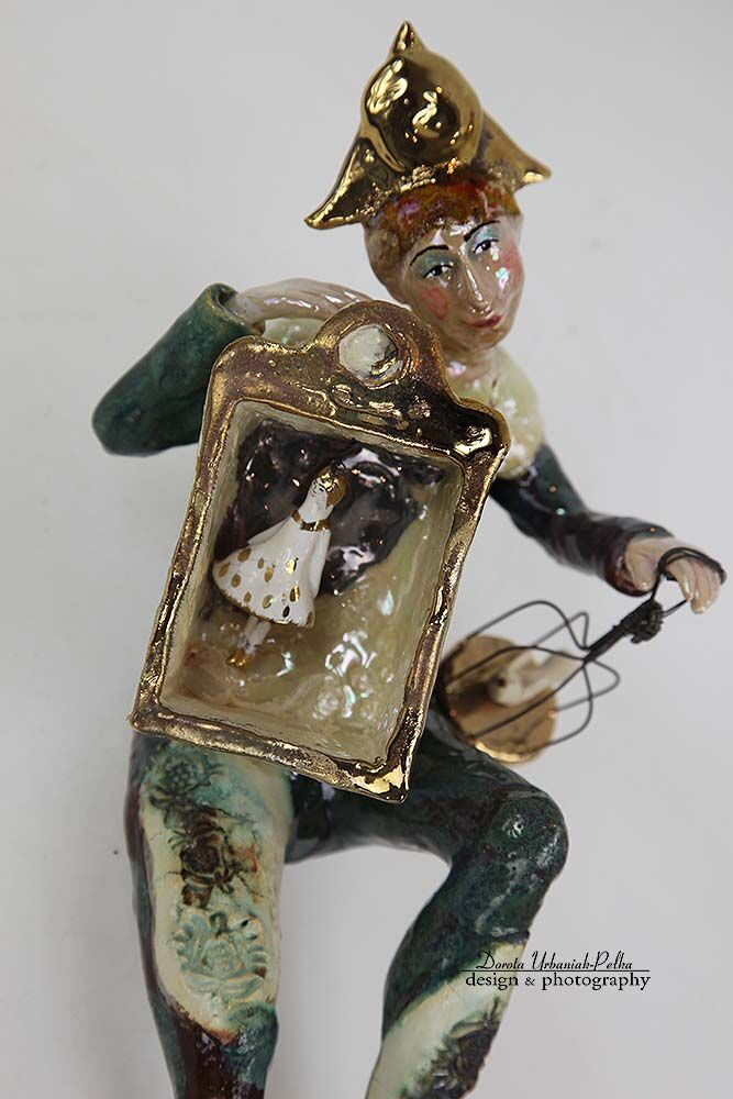 ELEMENTY: TEATRZYK , CZAPKA, KLATKA I DZIOBEK PTASZKA ORAZ TANCERKA SZKLIWIONY ZŁOTEM.