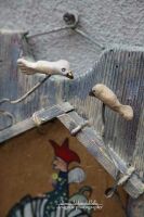 PTAKI SZAMOTOWE GÓRĄ ZE ZŁOTYMI DZIOBAMI NA DRUCIE OSADZONE W METALOWYCH KOŃCÓWKACH.