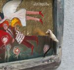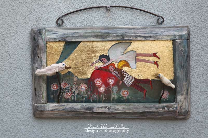 OBRAZ WYKONANY NA DESCE W TECHNICE OLEJNEJ - ZASTOSOWANY SZLAKMETAL W KOLORZE ZŁOTA.