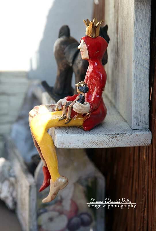 Korona oraz detale w postaci dziecka szkliwione prawdziwym złotem.