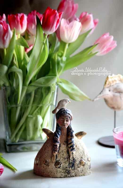 ANIOŁ SZAMOTOWY Z PTASZKIEM