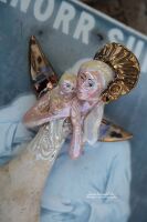 Skrzydła oraz nakrycie głowy szkliwione miedzią oraz złotem.