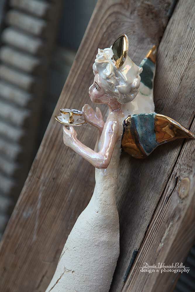 ANIOŁ TURMALINOWY Z FILIŻANKĄ