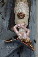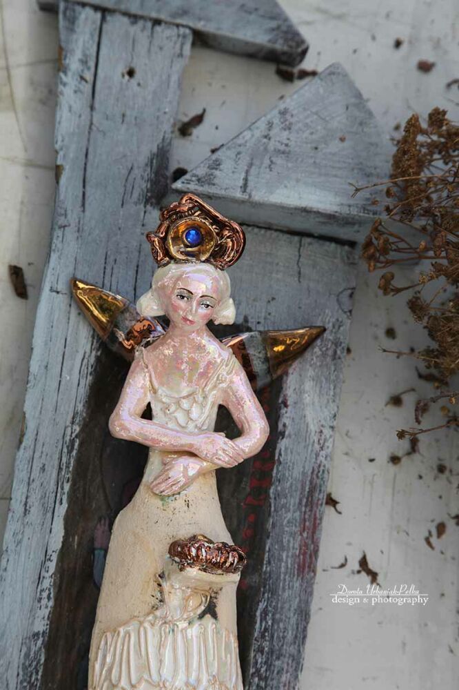 Skrzydła , NAKRYCIE GŁOWY oraz gniazko z jajeczkami szkliwione miedzią oraz złotem.