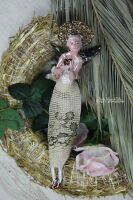 Skrzydła oraz nakrycie głowy oraz serce szkliwione miedzią oraz złotem.