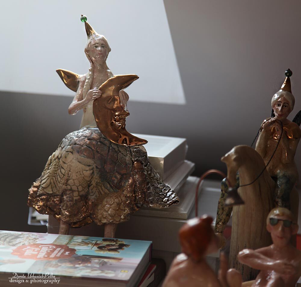 Skrzydła, KSIĘŻYC, ROŻEK, SUKNIA szkliwione złotem