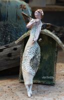 Skrzydła , NAKRYCIE GŁOWY oraz kwiat szkliwione miedzią oraz złotem.