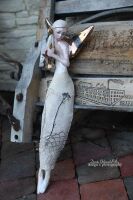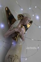 Skrzydła, trąbka szkliwione złotem.