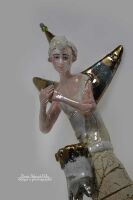 Skrzydła częściowo złocone, częściowo szkliwione platyną.