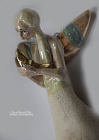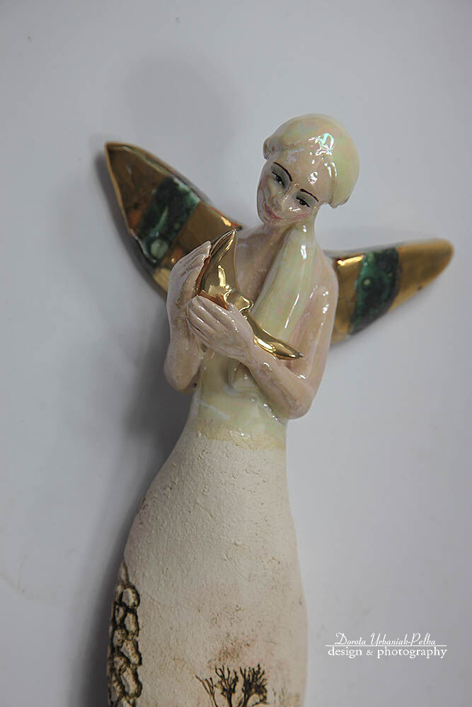 Skrzydła, księżyc, szkliwione złotem.
