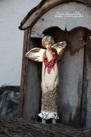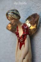 SKRZYDŁA ORAZ ELEMENT FALBANKI SZKLIWIONY ZŁOTEM.