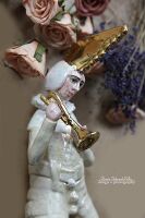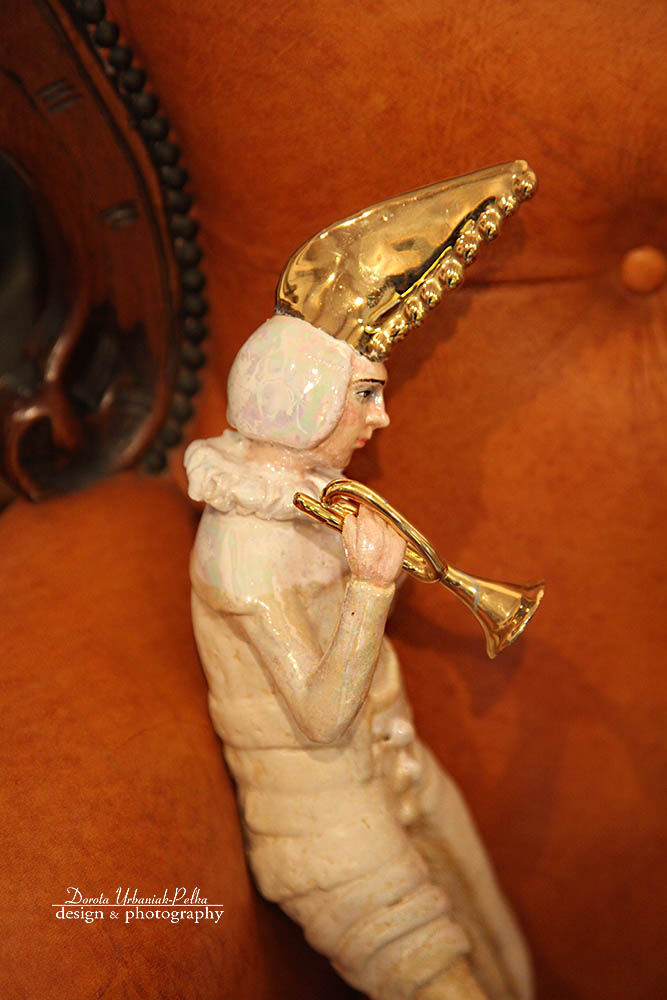 ELEMENTY: CZAPKA, BUCIKI ORAZ TRĄBKA SZKLIWIONE ZŁOTEM.