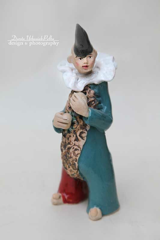 Pierrot wykonany z gliny kamionkowej.
