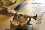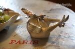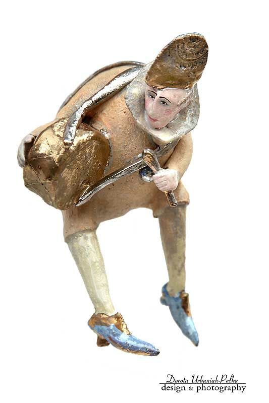 CZAPKA, BĘBEN, BRZEG PAŁECZKI ORAZ KROPELKI NA BUCIKACH SZKLIWIONE ZŁOTEM.